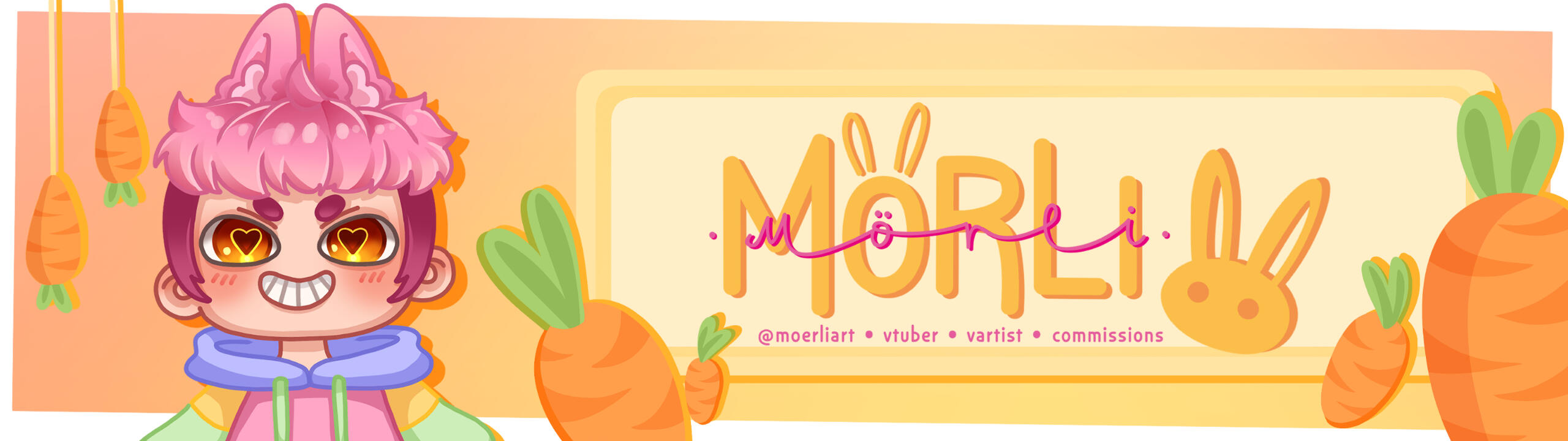 I'm Mörli, Digital Artist and Vtuber <3 I work as a freelance Designer and Illustrator.If you are interested in Commissioning me, contact me via Social Media or E-Mail.